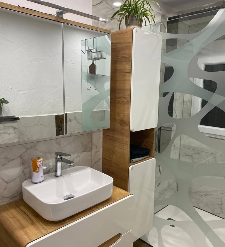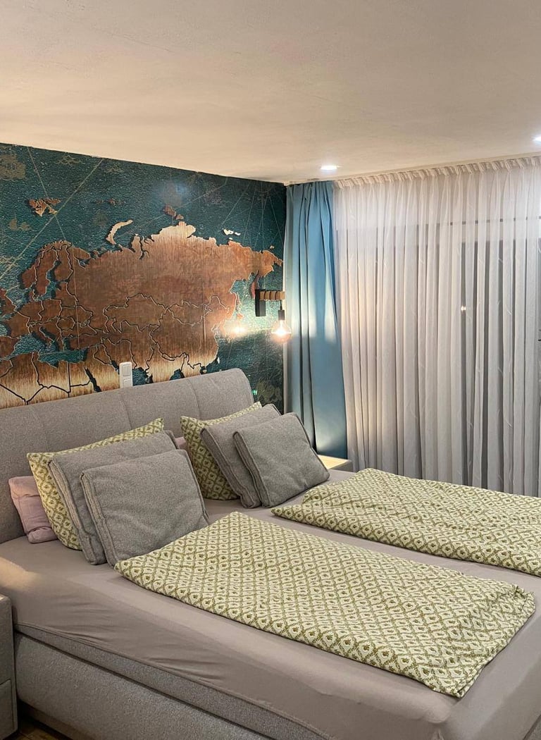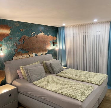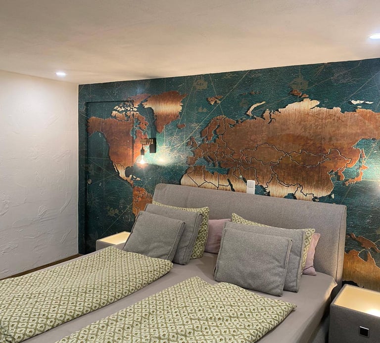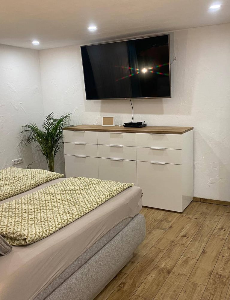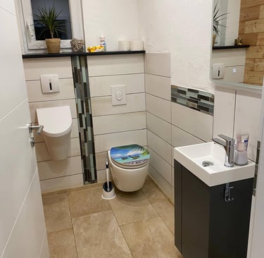 Im Keller findest du einen Heizungsraum mit moderner Pelletheizung, einen Waschraum sowie ein stilvolles Badezimmer mit Whirlpool-Badewanne, Fernseher und Kaminfeuer. Außerdem bietet das Haus eine Garage und ein separates Büro, das sich perfekt für Home-Office oder Hobby eignet.