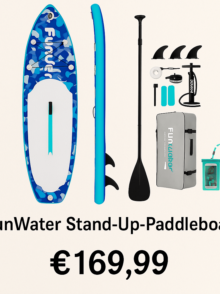 Das meistverkaufte Inflatable-Board für Einsteiger: stabil, komplett mit Paddel, Pumpe und Rucksack. schnelles Aufblasen in 10 Minuten – ideal für See, Strand oder Bootstour. Robustes Design & top Bewertungen machen es zum sicheren Summer-Hit.